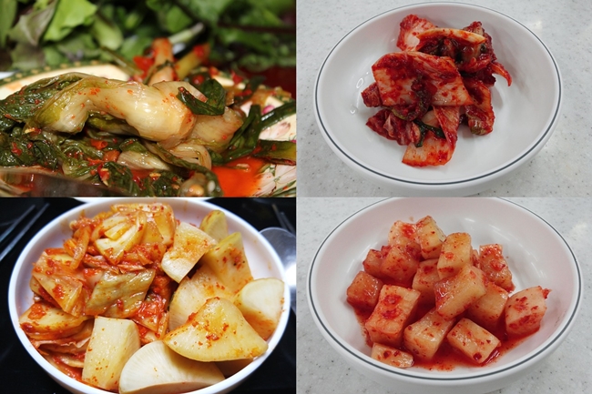 배추김치, 겉절이, 깍두기, 부추김치, 오이소박이, 깻잎무침.... 등