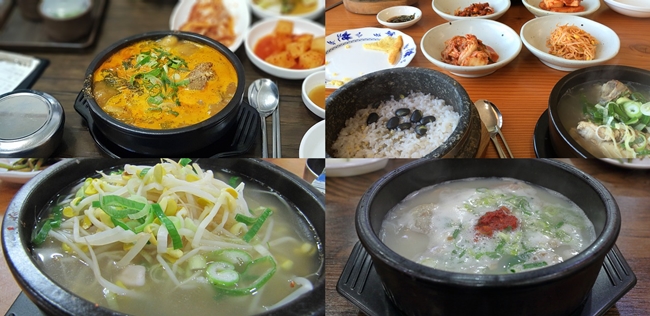 돼지국밥, 곰탕, 해장국, 칼국수 등등을